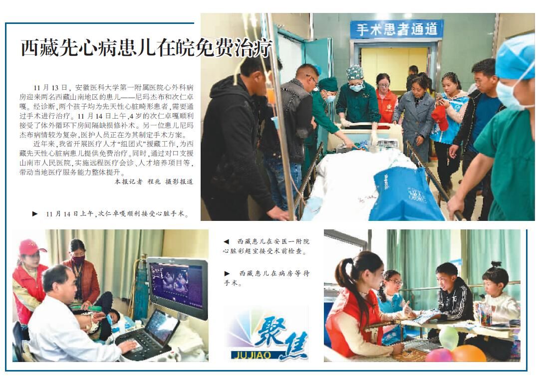 近年来,我省开展医疗人才“组团式”援藏工作,为西藏先天性心脏病患儿提供免费治疗。同时,通过对口支援山南市人民医院,实施远程医疗会诊、人才培养项目等,带动当地医疗服务能力整体提升。