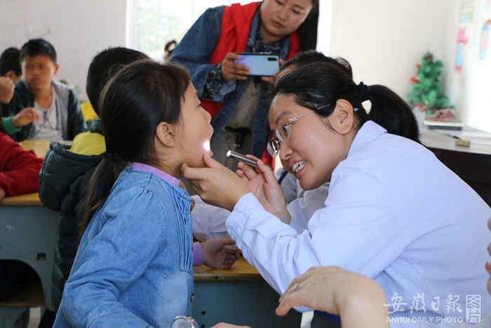 爱心团队在留守儿童学校教室给24名留守儿童进行了健康知识讲解,对孩子们的身体营养状况、视力、口腔等健康状况进行检查,专家还对每个孩子的心肺进行了听诊。