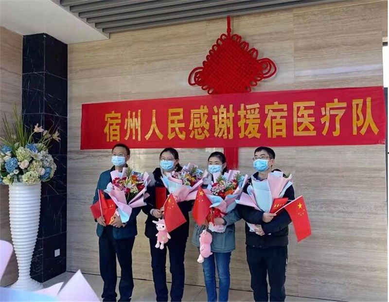 安医大附属阜阳医院4名援宿新冠核酸检测医疗队员凯旋。安医大附属阜阳医院供图