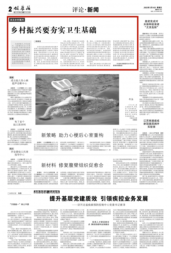 民族要复兴,乡村必振兴。全面建设社会主义现代化国家,实现中华民族伟大复兴,最艰巨最繁重的任务依然在农村,最广泛最深厚的基础依然在农村。乡村振兴,健康先行。评论·新闻版从今日起开设专栏,邀请专家学者等建言献策,为全面推进健康乡村建设凝聚共识和智慧。