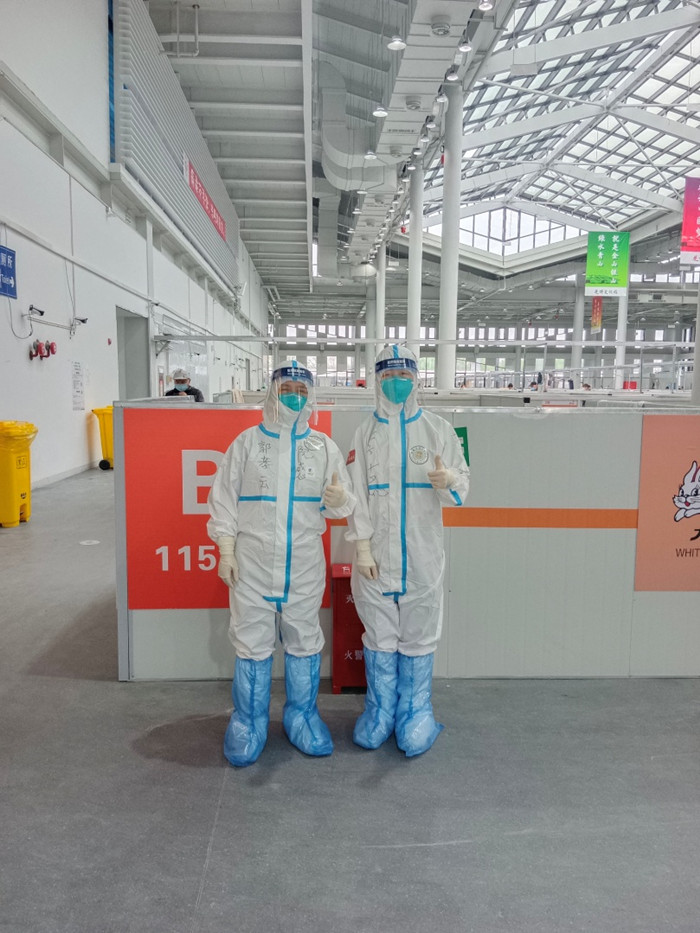 作为院感组的一员,在确认进舱的医务人员防护用品穿戴合理后我也跟随进舱查看方舱的各项情况。有条不紊的医护人员、和谐有序的舱内环境使我紧张的心情放松了许多,相信在我们所有人的努力下,要不了多久,大家一定可以回家与家人团聚。