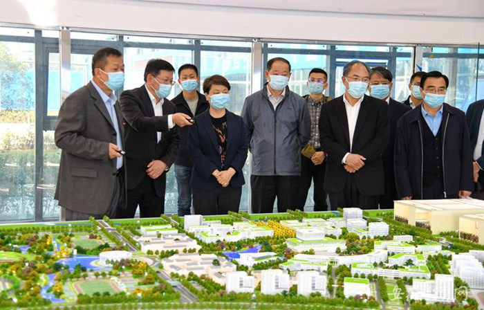 新医科中心项目是我省“教育提质扩容重大工程”重点支持项目,规划总占地面积约2190亩,一期总投资45亿元。在项目建设指挥部、一期工程施工现场,调研强调,要按照重点项目建设要求,坚持质量优先,加快建设进度,挂图作战,倒排工期,强化调度,确保按期投入使用。要强化底线思维,筑牢安全生产防线,抓好常态化疫情防控,确保项目施工安全。要以项目建设为契机,科学谋划学校改革发展,对标“双一流”,加强高峰学科建设,大力引进和培育一流人才,为健康安徽建设提供智力支撑。要聚焦大健康产业发展,全面融入合肥综合性国家科学中心大健康板块,推进“学院+中心”政产学研一体化模式,实现产教融合、科教融汇。