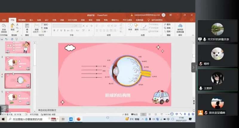 除了成熟的课业辅导、兴趣培养和陪伴交流,志愿者开展了多门充满趣味又科学严谨的“公共课程”,涵盖了卫生习惯教育、人体科学知识和安全教育等方面。疫情居家,用眼卫生显得更为重要,志愿者带孩子们从眼睛的结构、眼睛的成像原理、不良用眼习惯及保护视力建议四个方面形成对健康护眼的初步认识。