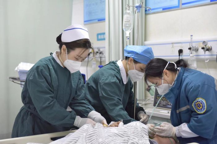 实行关口前移,提前进行分诊。从全院各科室迅速集结主治以上高年资医师,第一时间支援急诊科,形成多学科团队。分诊医生会将患者进行初步筛选分流,让医疗资源向重症患者倾斜,同时也让轻型、普通型患者在常规诊区治疗,互不干扰。其次,全院统一调配人力、物力,优化部署。医务部、护理部整合全院医护人力资源,根据科室病人需求统一调配,护理部、医工部、总务部等部门通过整合床位资源、重症监护病房床位、协调氧气瓶和急救设备,急需紧缺药品拆零分发,满足病人用药需求,保证急危重症患者救治质量和水平。