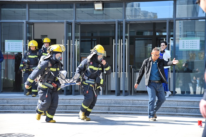 当天中午12时40分,接到演练总指挥指示后,现场指挥员按程序发出演练指令,尚学东楼、北楼和南楼门前立刻烟雾滚滚,消防警报声马上响起。宿舍楼中的学生在疏散引导员的带领下,用湿毛巾捂住口鼻,低姿行走,迅速从各楼层有序撤离。几分钟内,约2800名学生迅速疏散至指定安全区域。演练期间,新站高新区消防救援大队组织开展了人员搜救等演示活动,校医院医护人员对被救伤员进行了伤口包扎、心肺复苏等操作演示。