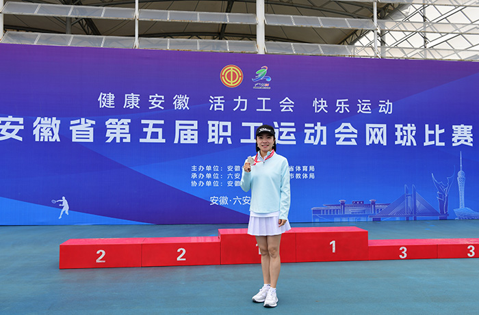11月10日,安徽省第五届职工运动会网球比赛圆满闭幕,我校教职工袁玎在本次比赛中获得乙组中年混双亚军的好成绩。