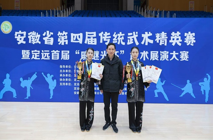 此次赛事由安徽省武术协会主办、定远县武术协会承办,历届省传统武术比赛中获得一等奖的运动员才有参与资格。比赛分为传统武术类个人比赛项目和太极类个人比赛项目。女子32式太极剑比赛中,我校汪若晴同学在全省46名参赛运动员中脱颖而出,勇夺冠军;女子24式太极拳和42式太极剑两个项目中,滕玉竹收获两项亚军。此外,两名同学在女子太极全能比赛中还收获了第四名、第五名的好成绩。